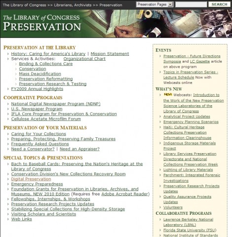 Samenvatting | Website van de Preservation Directorate of the Library of Congress (VS). Het Preservation Directorate overziet de behoudsactiviteiten van de LoC zelf, maar heeft ook een uitgebreide sectorwerking en neemt deel aan een aantal samenwerkingsverbanden. |