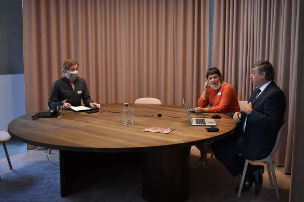 Vervolgens stonden enkele workshops op het programma, allemaal coronaproof in een eigen lokaal. In de eerste workshop vernam de minister hoe de organisaties de sector ondersteunen in het registreren en waarderen van erfgoed. Hij paste dit meteen ook zelf toe op een religieuze kelk.